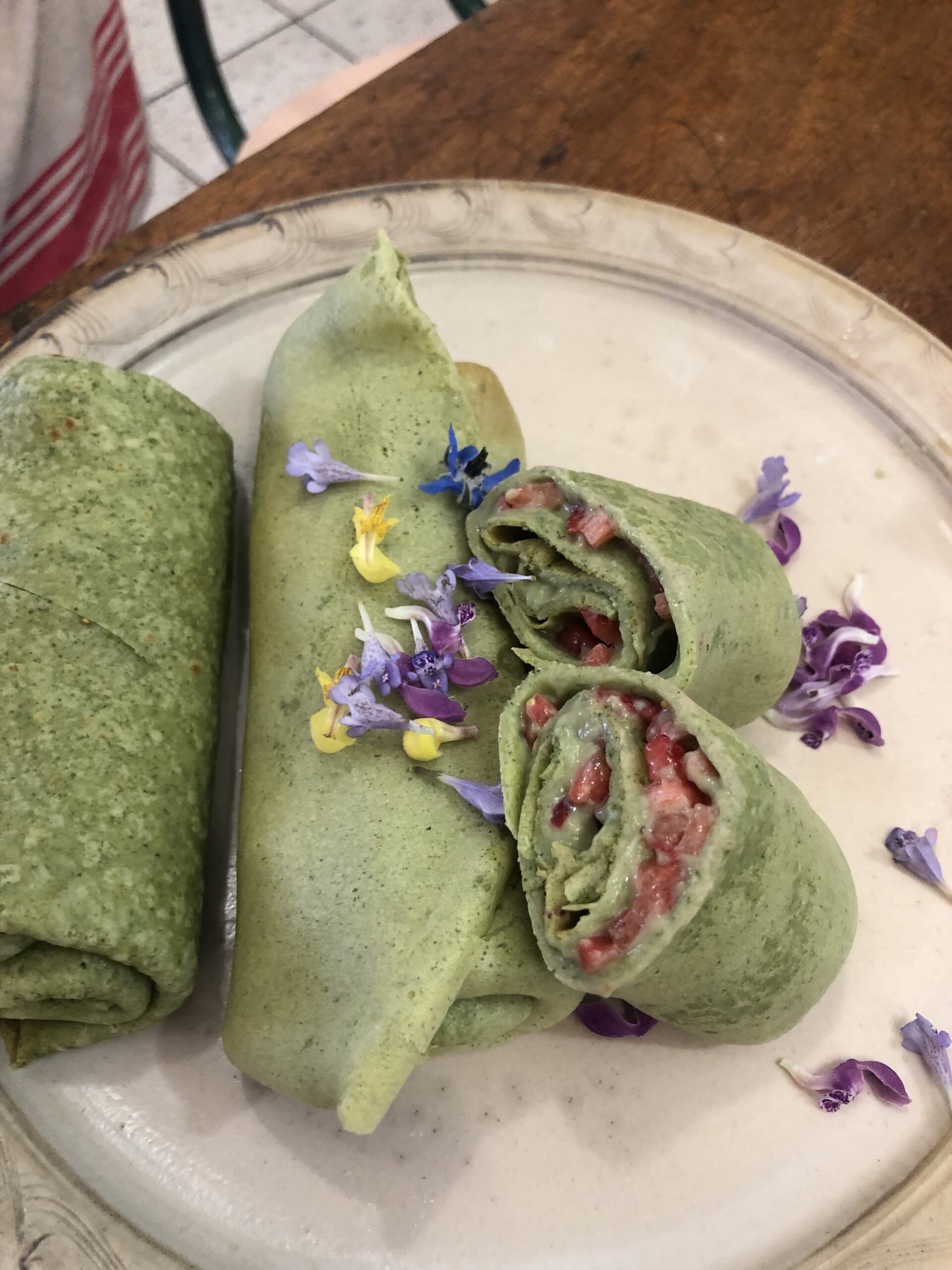 Pendant 1h30, nous cuisinons ensemble. Je vous présente les plantes que nous allons utiliser, leurs caractéristiques, comment les reconnaître et les cueillir. Puis nous réalisons une recette principale (une salée le matin, une autre sucrée l’après-midi) accompagnée de petites préparations bonus. On déguste tout sur place.