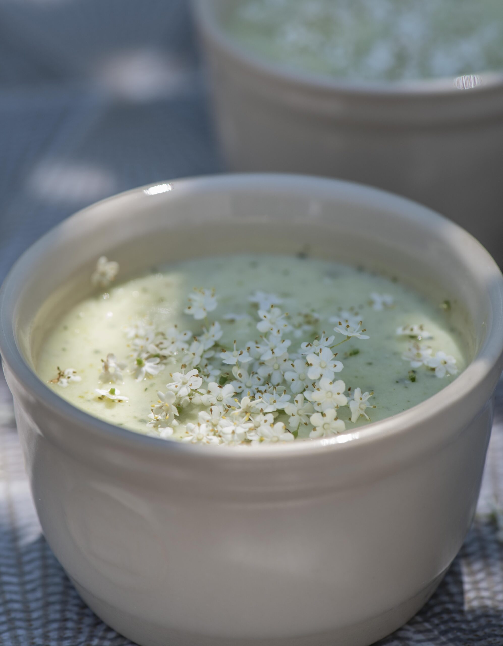 C’est là toute la magie de la cueillette : s’adapter à ce qui s’offre à nous. En explorant la campagne de mon Nord-Isère natal, j’ai eu l’idée d’expérimenter les fleurs de sureau dans une version salée. Habituellement cantonnées aux desserts, boissons et gelées, elles m’ont réservé une belle surprise : l’association fonctionne à merveille !